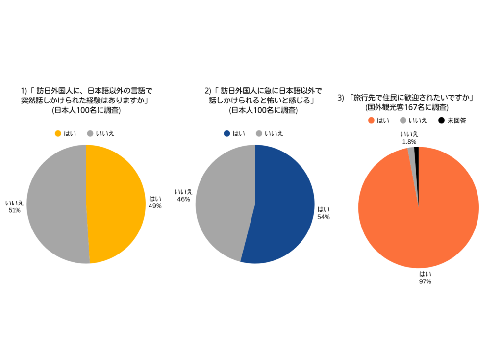 と回答しました。一方、外国人旅行者の97%が「旅先で住民に歓迎されたい」と答えています。